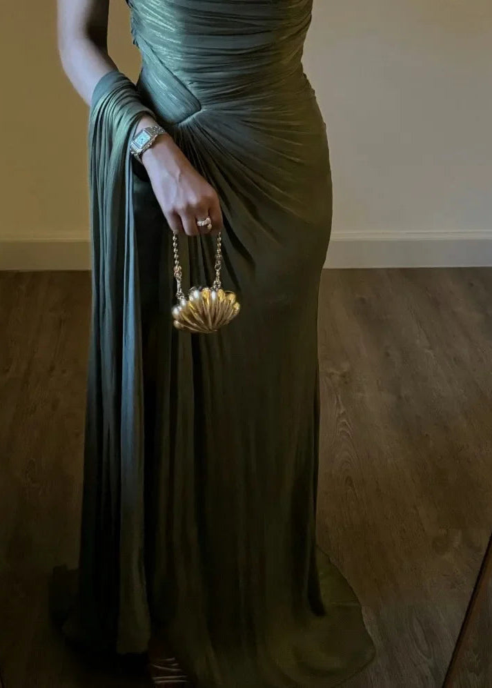 Corset Pleated Evening Dress with Ribbons
